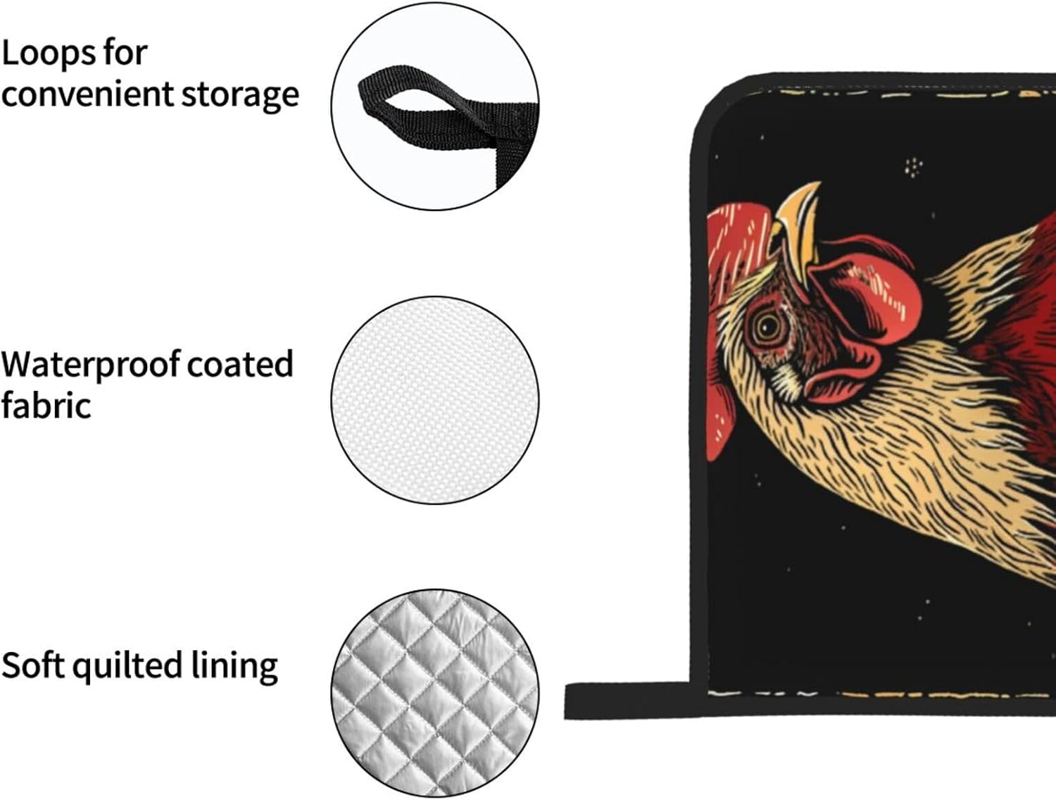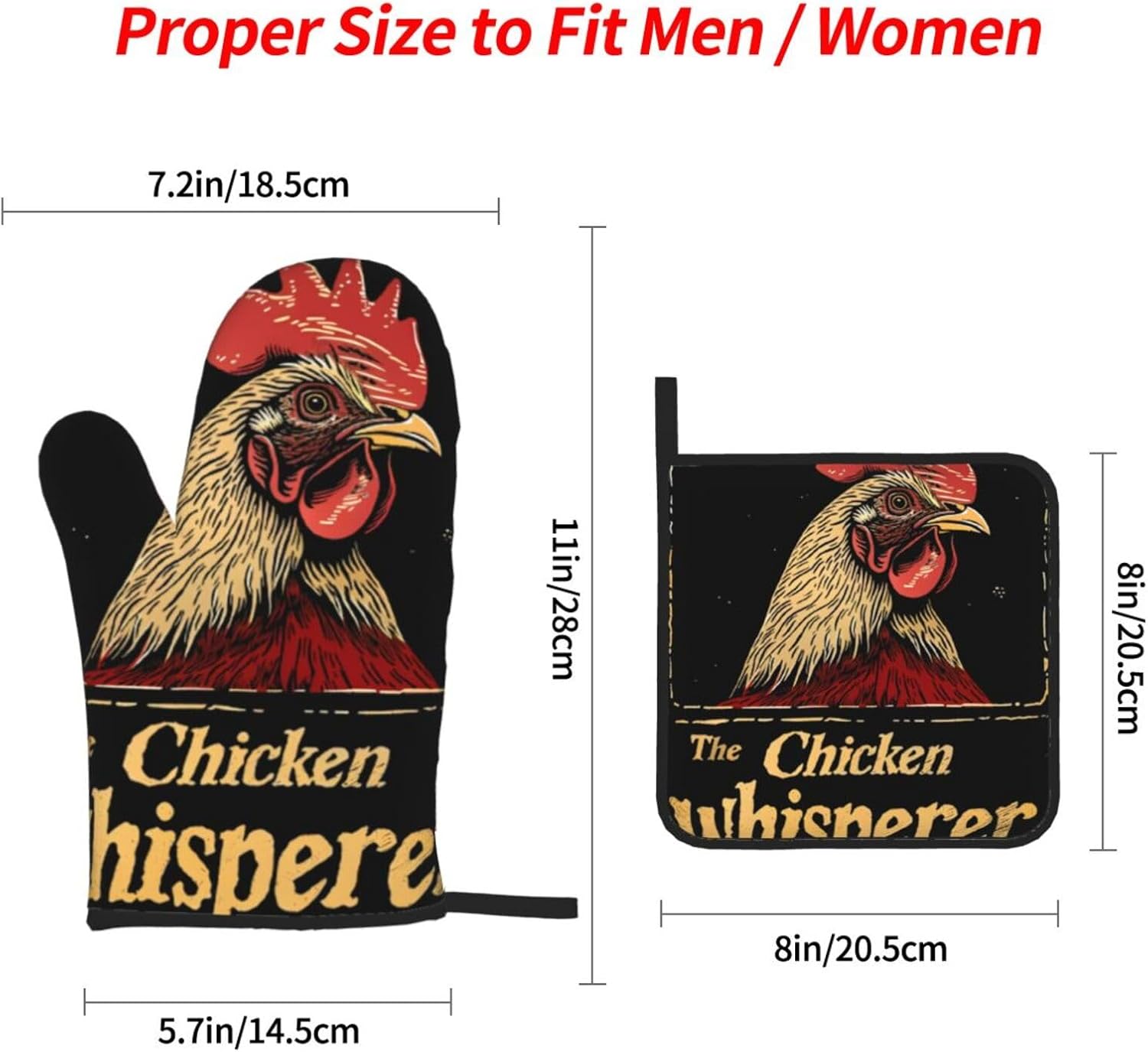 Chicken Whisperer Funny Chicken Lover Oven Mitts and Pot Holders 4 Pcs Set,High Heat Resistant 500 Degree Extra Thicken Long Kitchen Cotton Oven Glove for Cooking