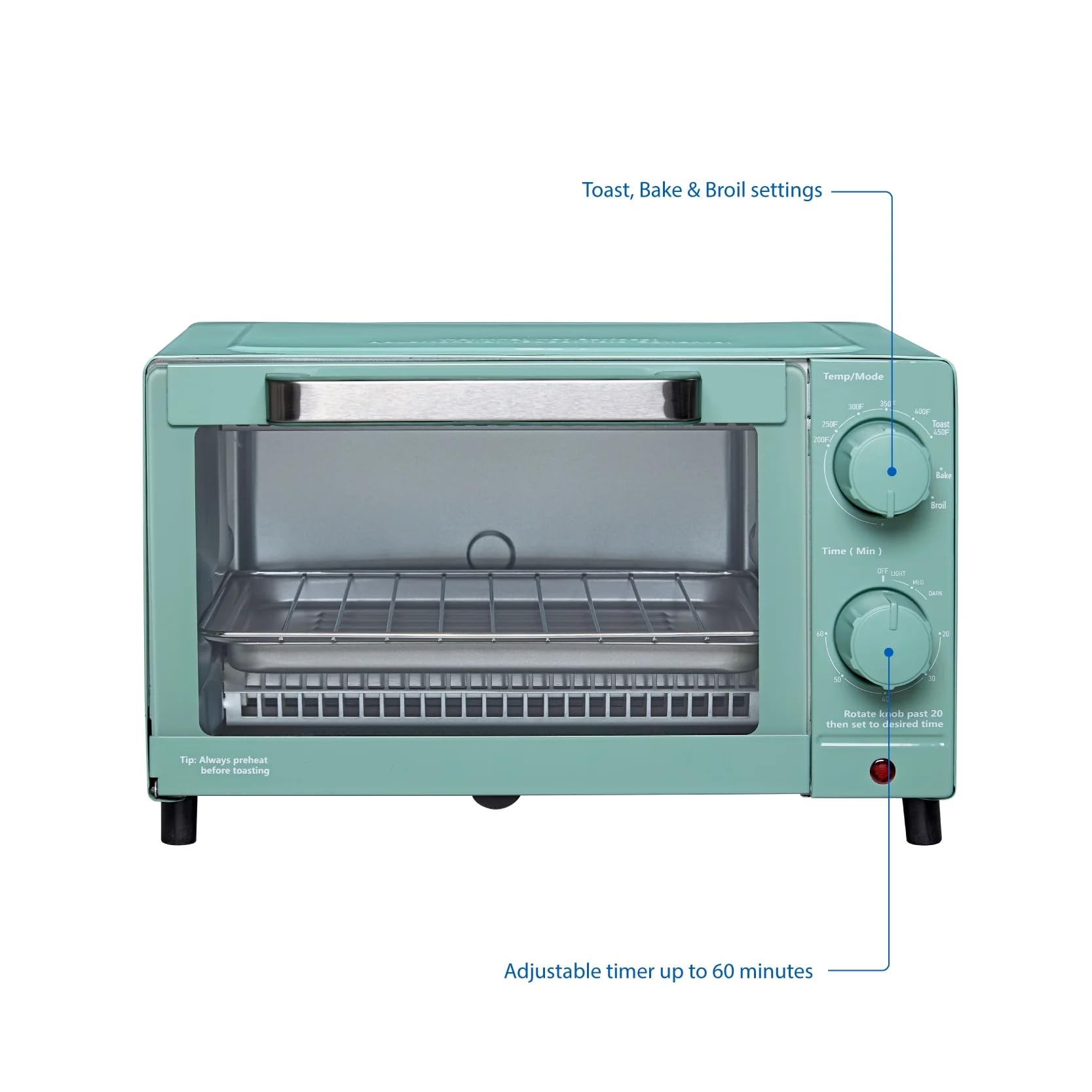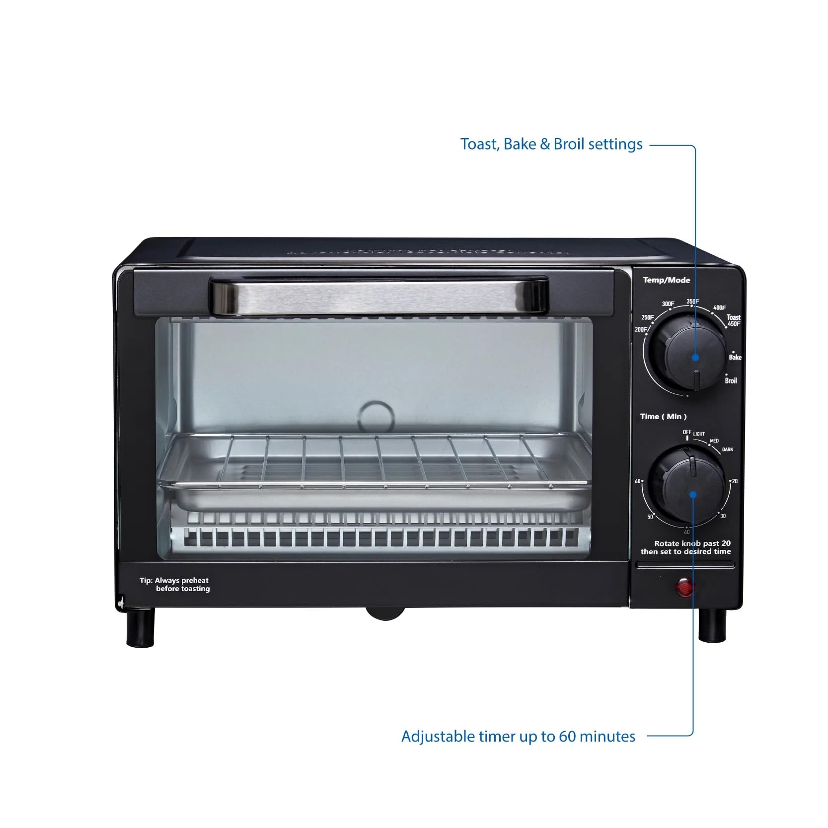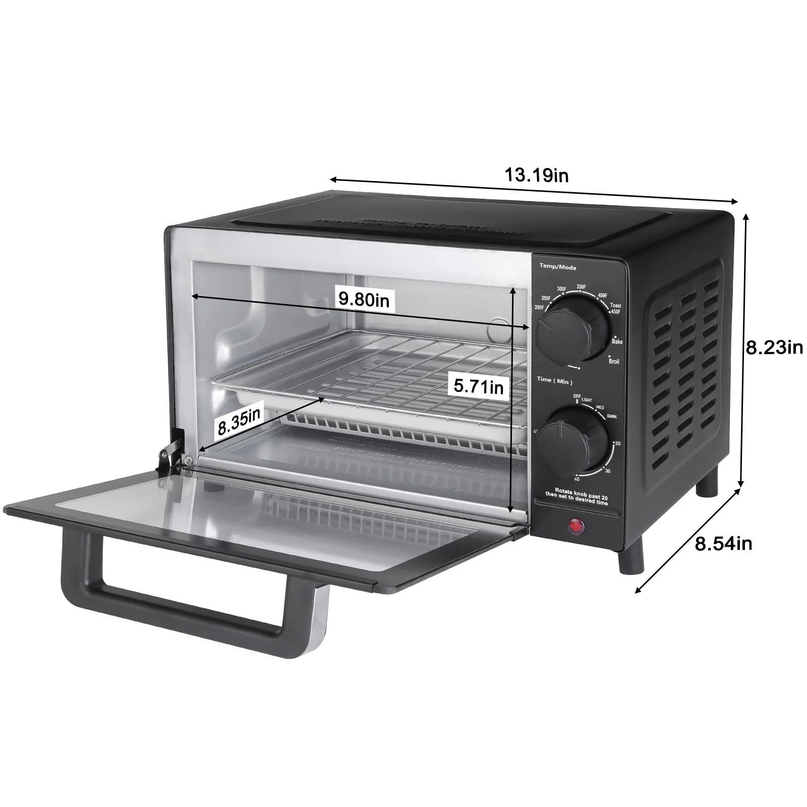 - Versatile toaster 4 slice oven complements your kitchen appliances with air fryer-style crisp results. Toast, bake, or broil meals with ease. Perfect size for 9 inch pizza, snacks or small batch cooking in compact spaces.